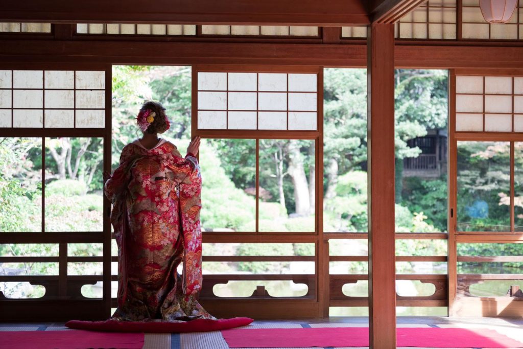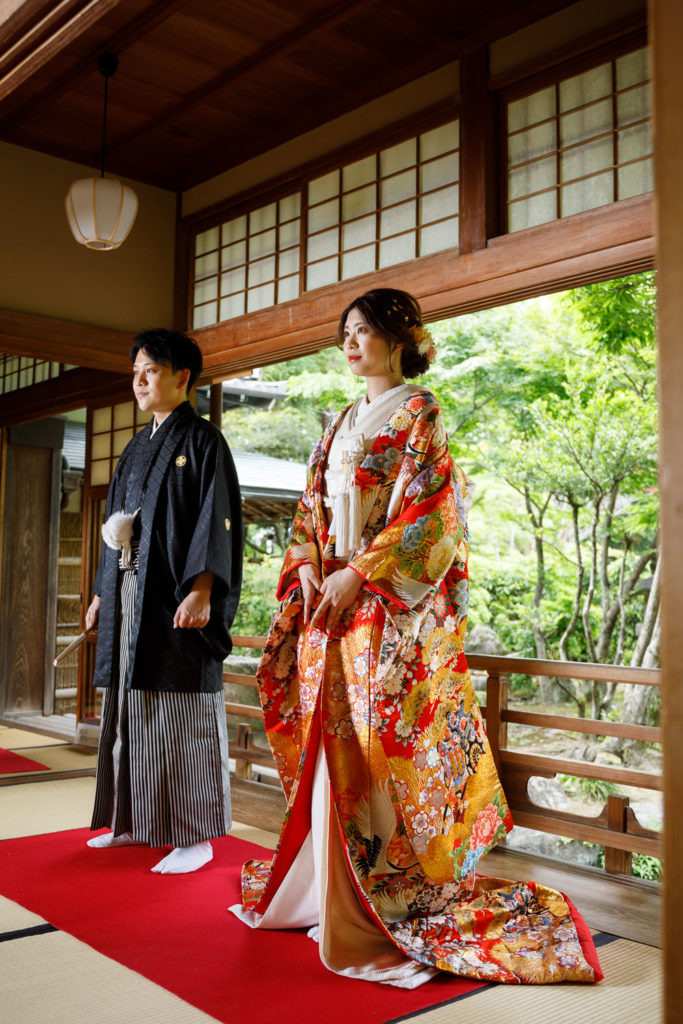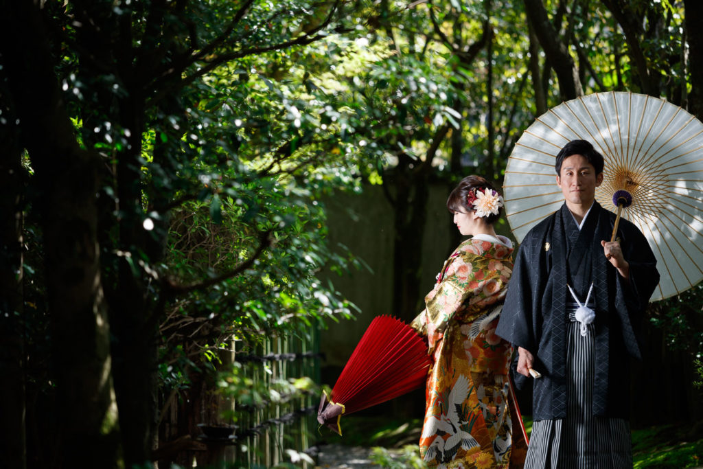 純和風の情緒を極めた、福岡を代表する名園。ファシーノ(FASCINO)がここで追求するのは、光と影のコントラストが織りなす「静かなる覚悟」の一枚です。